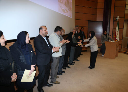 دکتر شعبانی در بخش پایانی این آئین به اتفاق معاونان و رؤسای محترم پژوهشکده ها در جایگاه قرار گرفتند و با اعطای لوح سپاس و هدیه ای از برترین های برگزیده پژوهشگاه در هفته پژوهش و فناوری سال جاری صمیمانه به شرح اسامی ذیل قدردانی نمود و برای آنان در راستای پیشبرد اهداف عالی پژوهشگاه سلامتی و توفیقات الهی مسألت نمود.