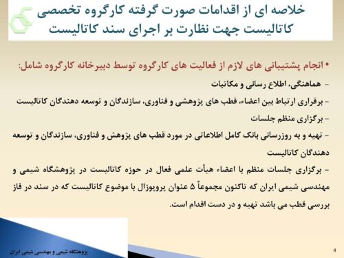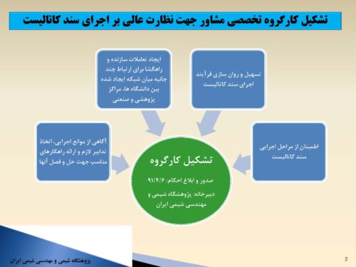 مختصری از فعالیت های دبیرخانه کارگروه تخصصی مشاور جهت نظارت عالی بر اجرای سند کاتالیست