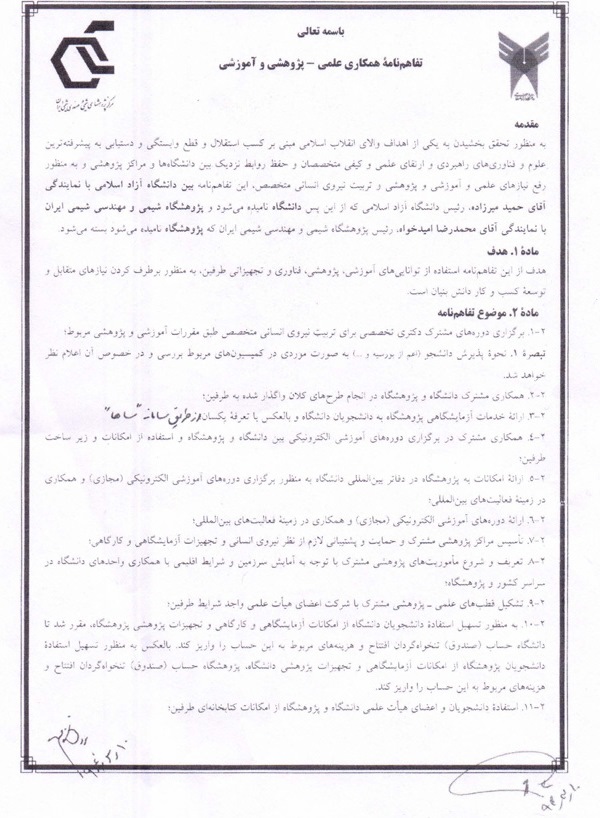 متن تفاهم نامه همكاري علمي - پژوهشي و آموزشي